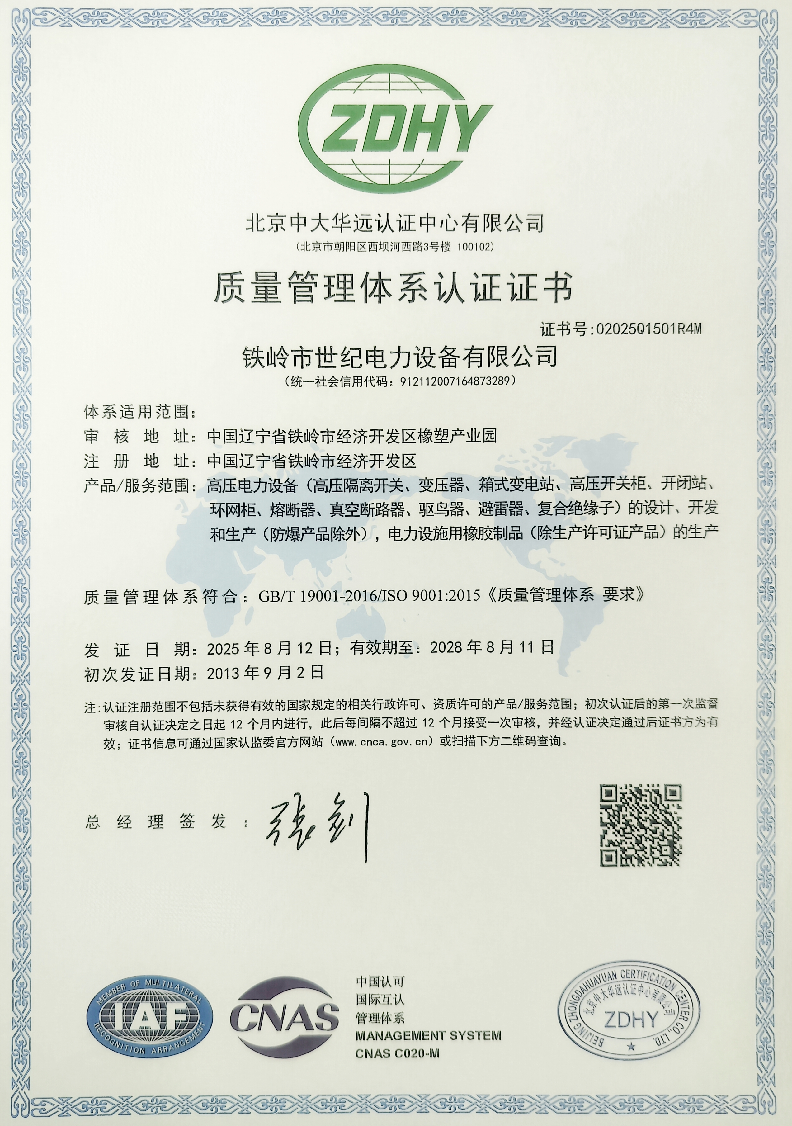 鐵嶺市世紀電力設備有限公司是集科研開發、生產制造、用戶服務于一體的國家高新技術企業,始建于1999年,位于鐵嶺經濟開發區,占地面積5萬余平方米,建筑面積2萬余平方米。主要從事國家電網配套戶外高低壓隔離開關、電力電纜、變壓器成套裝置、高低壓開關柜、箱式變電站、絕緣子等產品的研發、生產和銷售。公司現有國家發明專利6項、實用新型專利9項,公司通過了ISO9001國際質量管理體系認證、ISO14001環境管理體系認證和ISO 45001職業健康安全體系認證。